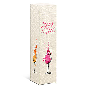 Wir bieten außergewöhnliche Faltschachteln für ein bis drei Wein-, Sekt- oder Schnapsflaschen. Verschiedene Motive präsentieren den Inhalt gekonnt und punkten mit wertigen Materialien und Effekten. Dank vorgeklebtem Automatikboden sind die Faltschachteln schnell aufzurichten.