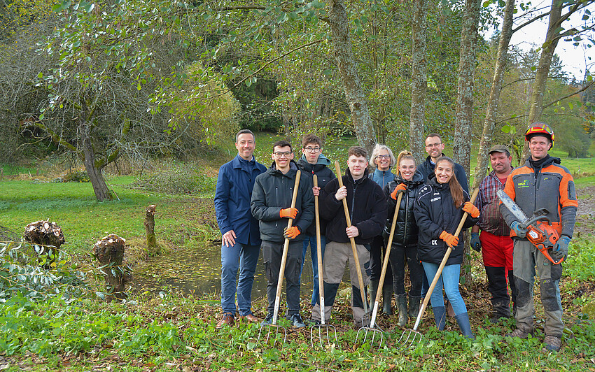 In Zusammenarbeit mit dem Landschaftserhaltungsverband Ortenau e. V., dem Forstrevierleiter für den Gemeindewald Biberach Christoph Müller und dem Forstservice Schnaitter haben vier Auszubildenden der Karl Knauer KG Anfang März 2022 das bereits 2021 ins Leben gerufene Projekt umgesetzt und eine rund 1.000 m² große Brachfläche in Biberach/Baden wieder aufgeforstet. Bei dieser Aktion wurden insgesamt 250 Traubeneichen und 50 Winterlinden gepflanzt, um eine ehemalige Brandfläche zu rekultivieren. Von der Flächenvorbereitung über die Pflanzgutbeschaffung und die Pflanzung bis hin zum Anbringen spezieller nachhaltiger Wuchshüllen aus Holz, die die Jungpflanzen vor Wildschäden schützen, bot das Projekt den Auszubildenden einen Einblick in unterschiedlichste Themenbereiche.