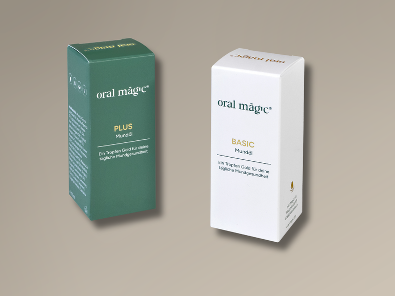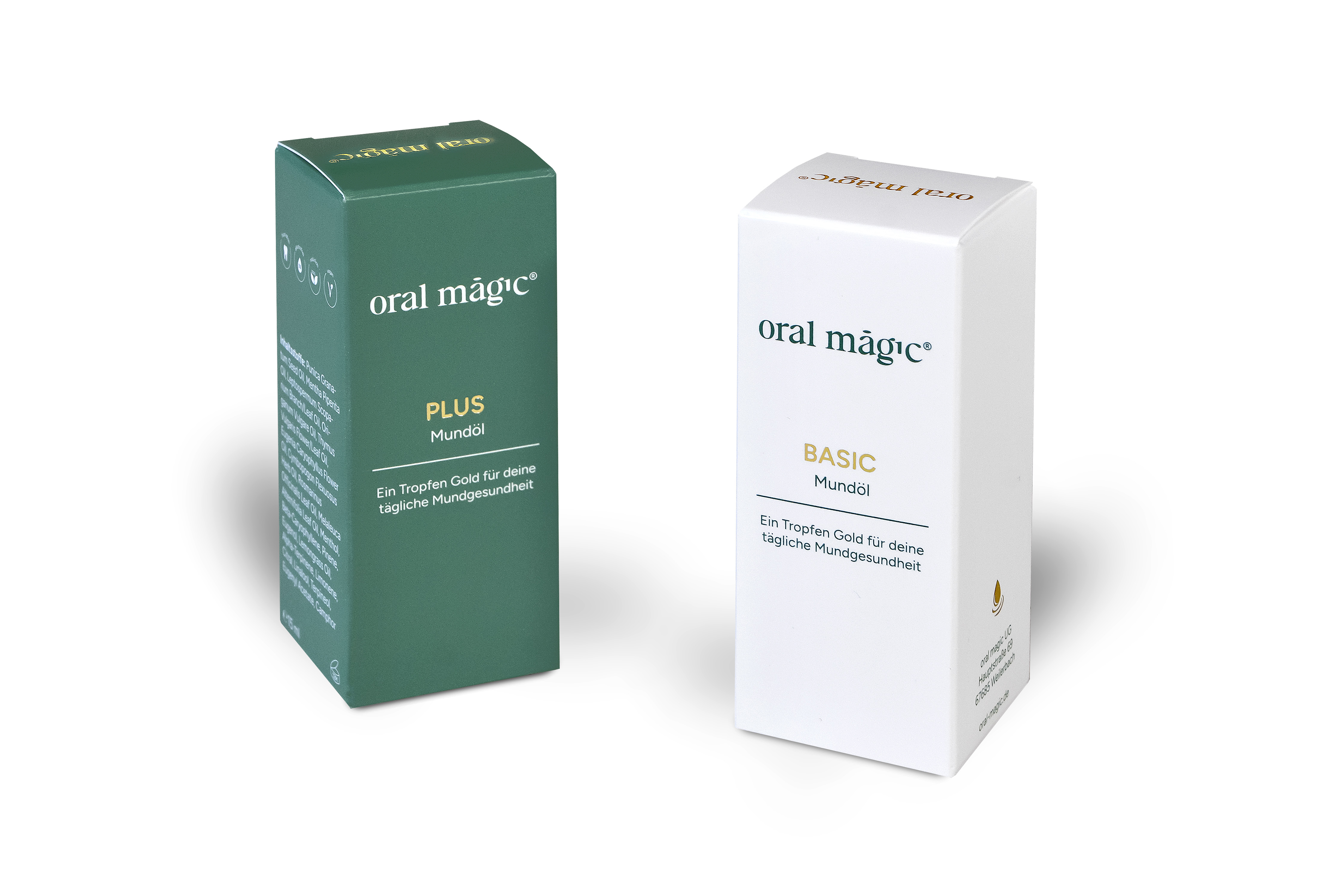 Die Mundöle „oral magic basic“ und „oral magic plus“ des jungen Unternehmens oral magic wurden über mehrere Jahre hinweg von Zahnärztin Dr. Katharina Klein in ihrer Praxis entwickelt und richten sich an Anwenderinnen und Anwender mit Fokus auf natürliche Pflege. Entsprechend klar definiert war die Anforderung an die Verpackung für die erste offizielle Vermarktung: eine reduzierte Gestaltung, die informiert, ohne zu überladen, und zugleich eine hochwertige Anmutung vermittelt. Das Verpackungsdesign sowie die Markenentwicklung stammen von der Agentur Digitallotsen und bildeten die Grundlage für die Umsetzung durch Karl Knauer.