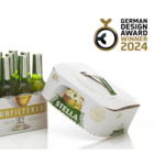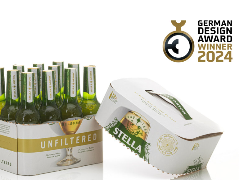 In diesem Fall waren es vor allem drei Dinge, die die Jury des renomierten German Design Award 2024 dazu bewogen haben, die Stella Artois-Verpackung auszuzeichnen: Das Erste, was bei der Stella Artois-Verpackung ins Auge fällt, sind die abgerundeten Ecken und die aufwändige Lackierung des Kartons. Damit hebt sich die hochwertige Verpackung der Brauereigruppe ABInBev von den üblichen Umverpackungen in Design und Optik deutlich von den Mitbewerbern ab. Nimmt man den Karton, in dem zwölf 0,33 l-Reliefflaschen stecken, aus dem Regal, zeigt sich ein zweites, sehr innovatives Detail, für das die Verpackungsentwickler von Karl Knauer nun ausgezeichnet wurden: der teleskopierbare Handgriff, der ohne Verstärkungsbänder aus Kunststoff auskommt und das Zugreifen besonders einfach und umweltgerecht macht. Last but not least lässt sich die Verpackung entlang einer 360-Grad-Perforation kinderleicht in zwei Hälften teilen. Das untere Fach hält alle Flaschen zusammen und kann als Tablett genutzt werden, wenn man die integrierten Seitenlaschen nach innen schiebt. „Trotz der besonderen Details und gewünschten Features ist dieses Projekt außergewöhnlich schnell, unkompliziert und rund gelaufen. Die Zusammenarbeit mit den beteiligten Projektpartnern hat wirklich Spaß gemacht und war erfrischend wie der Inhalt unserer jetzt preisgekrönten Verpackung“, erinnert sich Hubert Wernet, Leitung Innovation bei Karl Knauer, gerne an die Entwicklungsphase zurück.